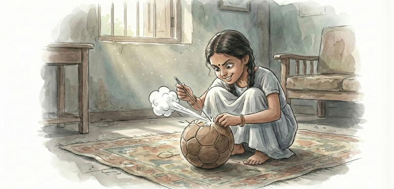 I was timid in school, but once I returned home, I must admit, I could be quite naughty. Every afternoon our male cousins would take over our play area and start a football game, leaving no room for the girls. One day we decided to teach them a lesson. I took their football, opened up the stitching with a big needle, and poked a hole in the bladder!